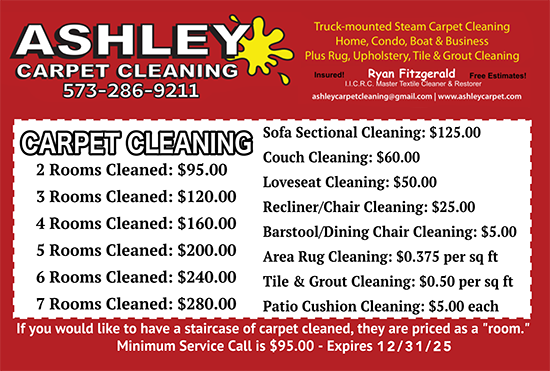 Ashley Carpet Cleaning is your source for carpet cleaning at Lake of the Ozarks. We use truck mounted carpet cleaning equipment for your home, condo, boat & business. We service the entire Lake area!